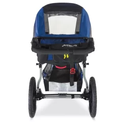 - La rueda delantera giratoria de 12,5 pulgadas permite una excelente maniobrabilidad; se bloquea hacia adelante para una mayor estabilidad al trotar o cuando el terreno se vuelve difícil.