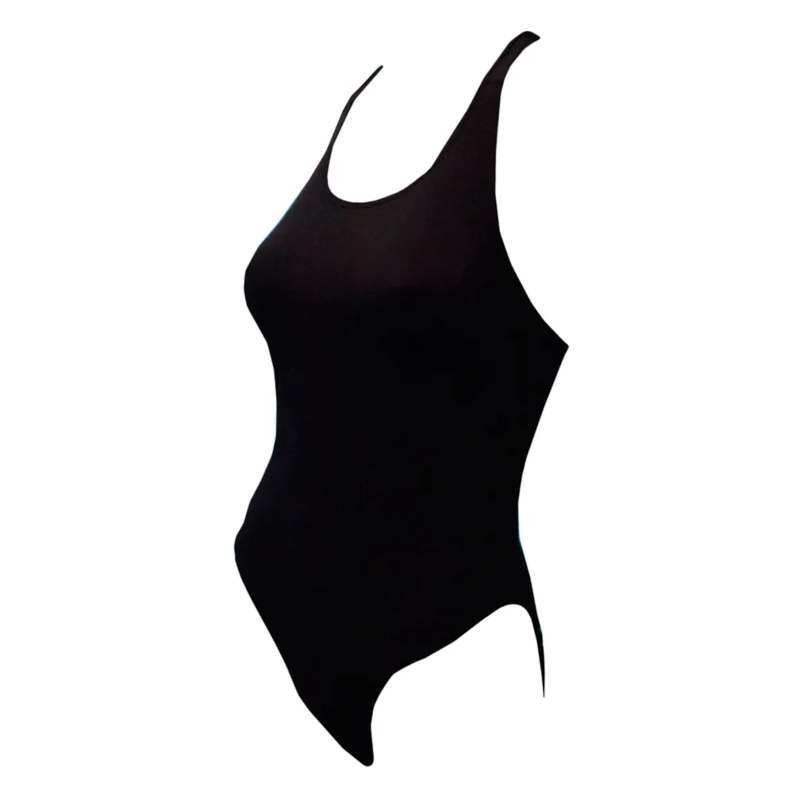 – Con un diseño de espalda alta con pequeñas aberturas en forma de cerradura, piernas de corte bajo y cobertura total.