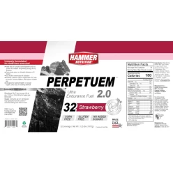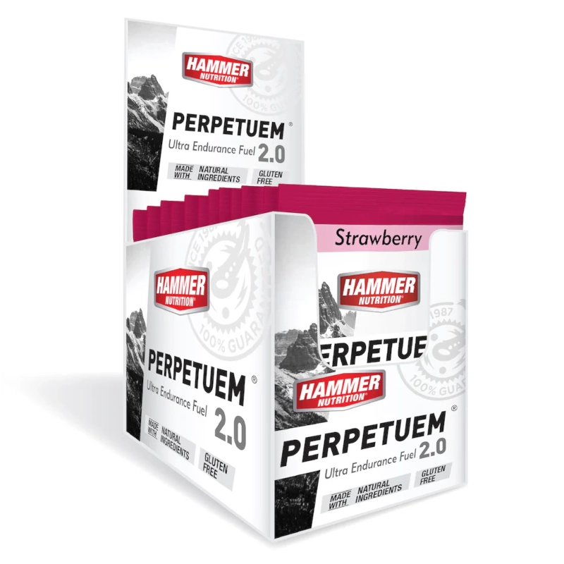 Hammer Perpetuem: Bebida energética de larga duración diseñada para esfuerzos prolongados. Combina carbohidratos complejos, proteína de soya y grasas saludables para brindar energía sostenida, reducir la fatiga muscular y optimizar el rendimiento. Ideal para entrenamientos o competencias de más de 2 horas.