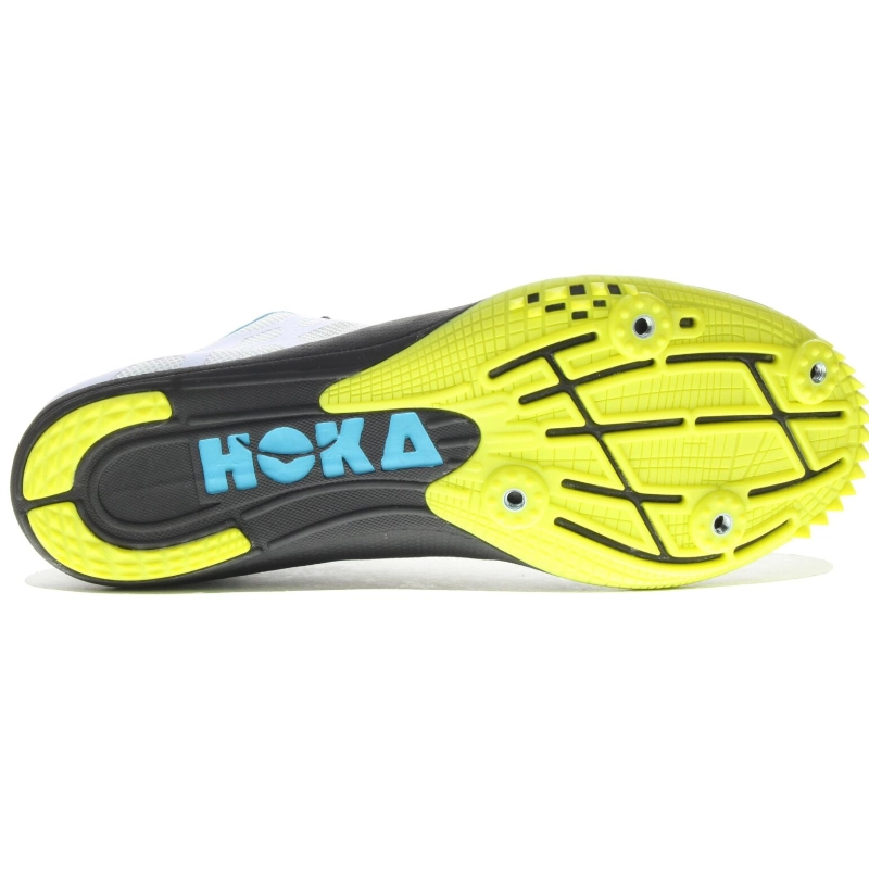 ¡Reactividad y flexibilidad! La zapatilla de clavos Hoka One One Rocket MD azul cielo y negra de femme es ideal para tus carreras entre 400 y 1.000 metros.